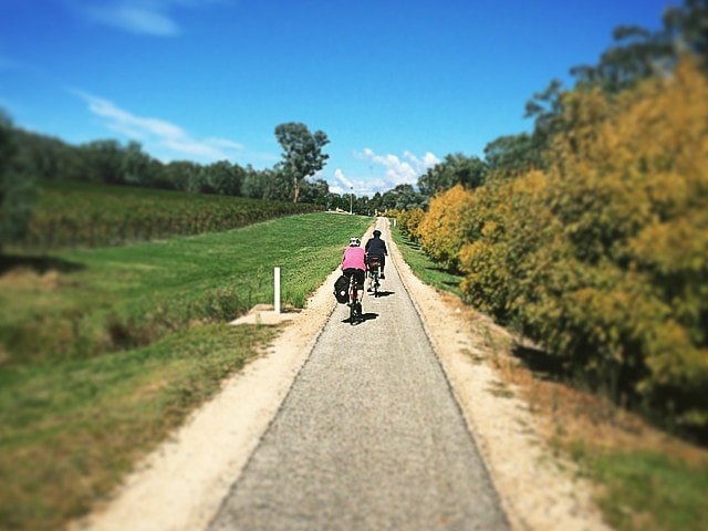 Check out Tour de Vines' cycling trips on the Murray to Mountains Rail Trail ranging from 2 days to 7 days.
